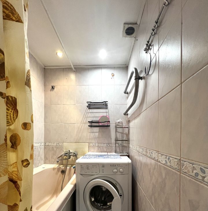 В квартире выполнен косметический ремонт. Для вашего удобства здесь есть вся необходимая мебель и техника: на кухне — мебельный гарнитур, в комнате — мебель для отдыха. Из техники — холодильник, телевизор и стиральная машина. Санузел совмещённый, оборудован ванной. Окна выходят во двор, поэтому в квартире всегда тихо и уютно. Подключен интернет.