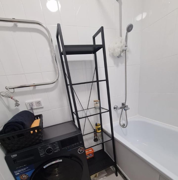 Квартира полностью готова к проживанию: в наличии вся необходимая мебель на кухне и в комнате. Современная техника включает кондиционер, холодильник, посудомоечную машину, телевизор и стиральную машину, что делает проживание комфортным и удобным. В ванной комнате установлена ванна, что идеально для расслабляющих вечеров.