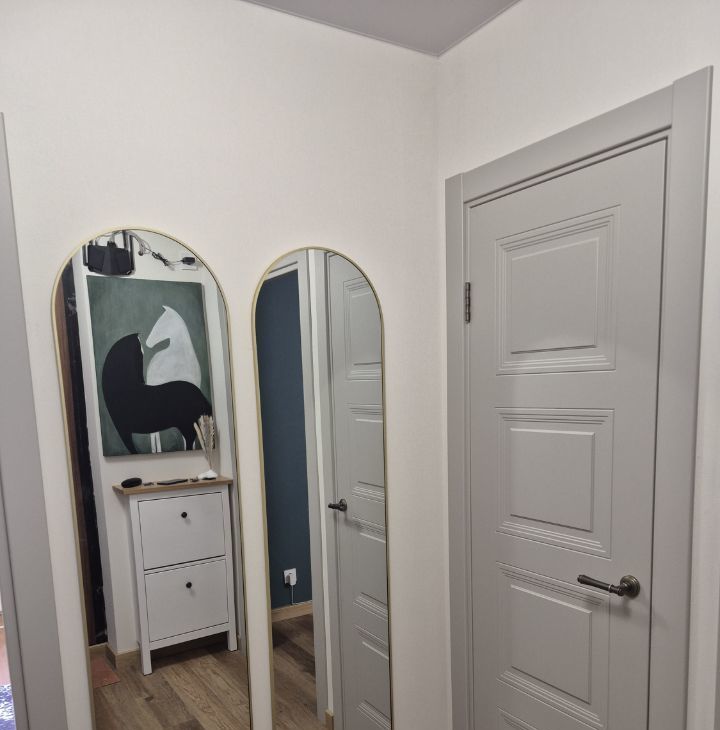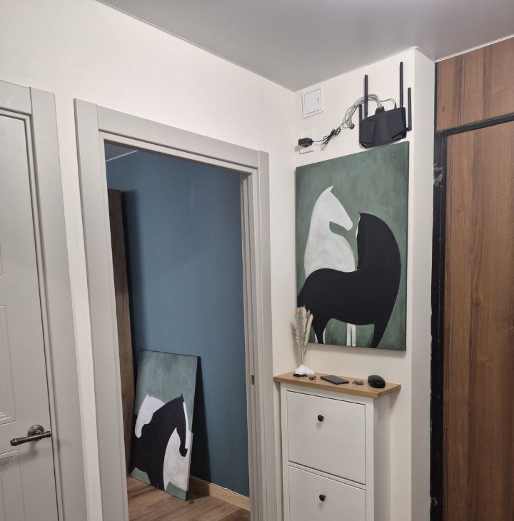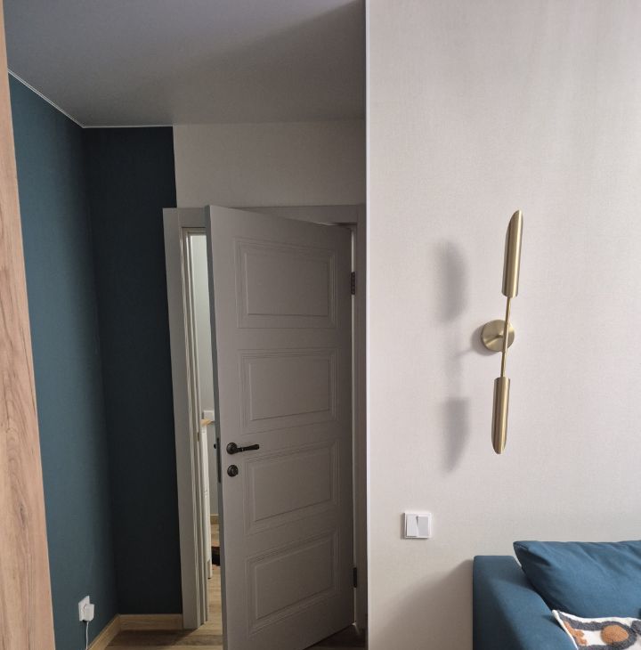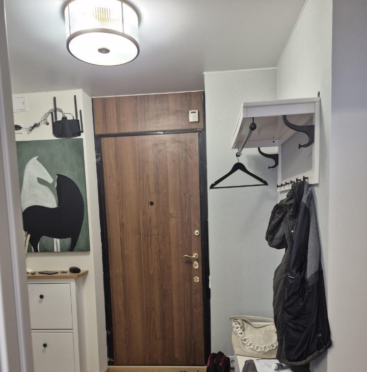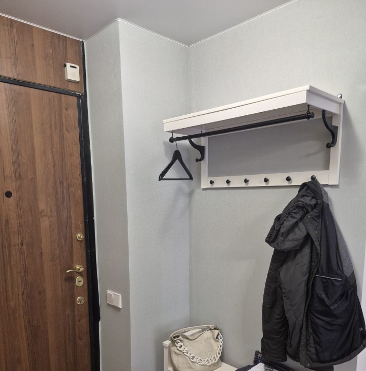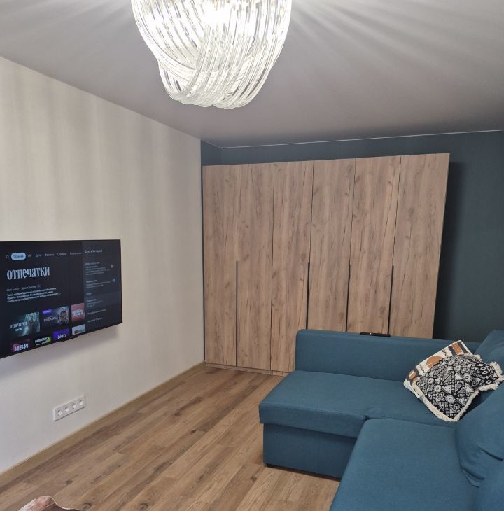 Техника: кондиционер, СВЧ, Wi-Fi, стиральная машина, двухкамерный холодильник. Есть оборудованная кладовка. В большой комнате установлена Алиса с функцией умного дома, с помощью которой включается подсветка за телевизором и за шкафом.