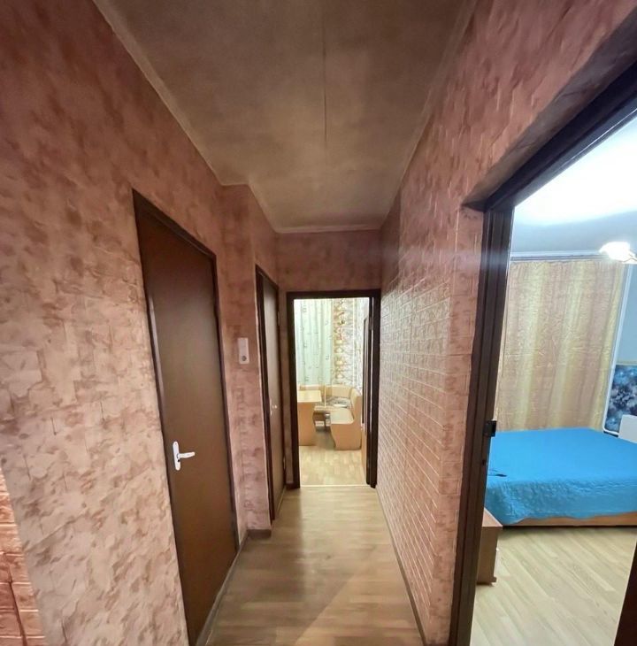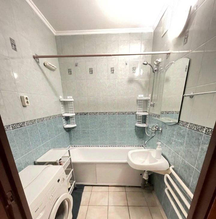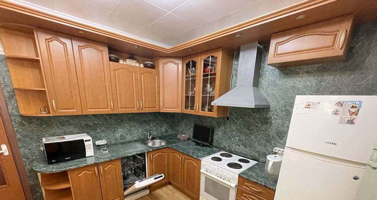 Стоит мебель и бытовая техника. На кухне - кухонный гарнитур , двухкамерный холодильник ,ПОСУДОМОЕЧНАЯ машина , СВЧ, обеденный стол, стулья . Телевизор на кухне , есть новая посуда : набор кастрюль с нержавейки и т. д. все необходимое , электрочайник . В большой комнате диван двух спальный, тумба , ЖК ТВ , шкаф- купе вместительный , выход на застекленную лоджию . В другой комнате стоит - кровать , комод , телевизор , шкаф угловой . С/У раздельный , плитка на стенах , новая сантехника . Стиральная машина автомат. В коридоре -шкаф-купе .