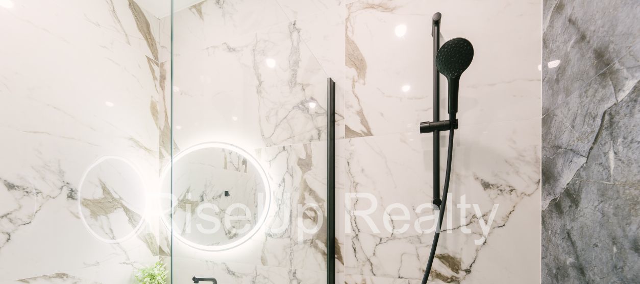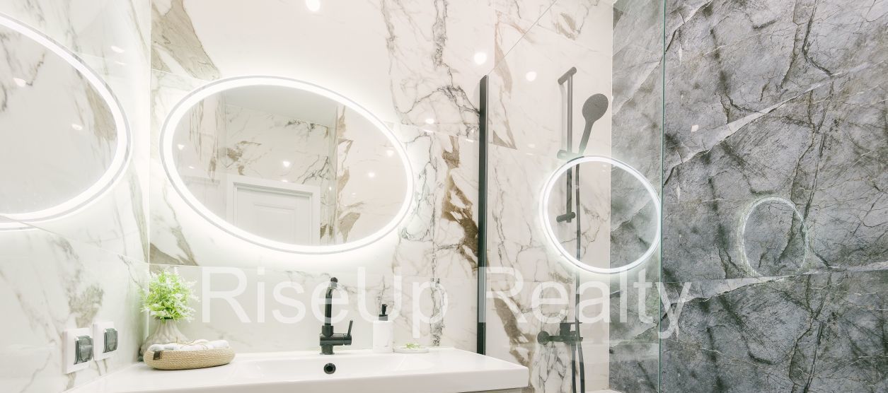 Отделка из широкоформатного керамогранита.