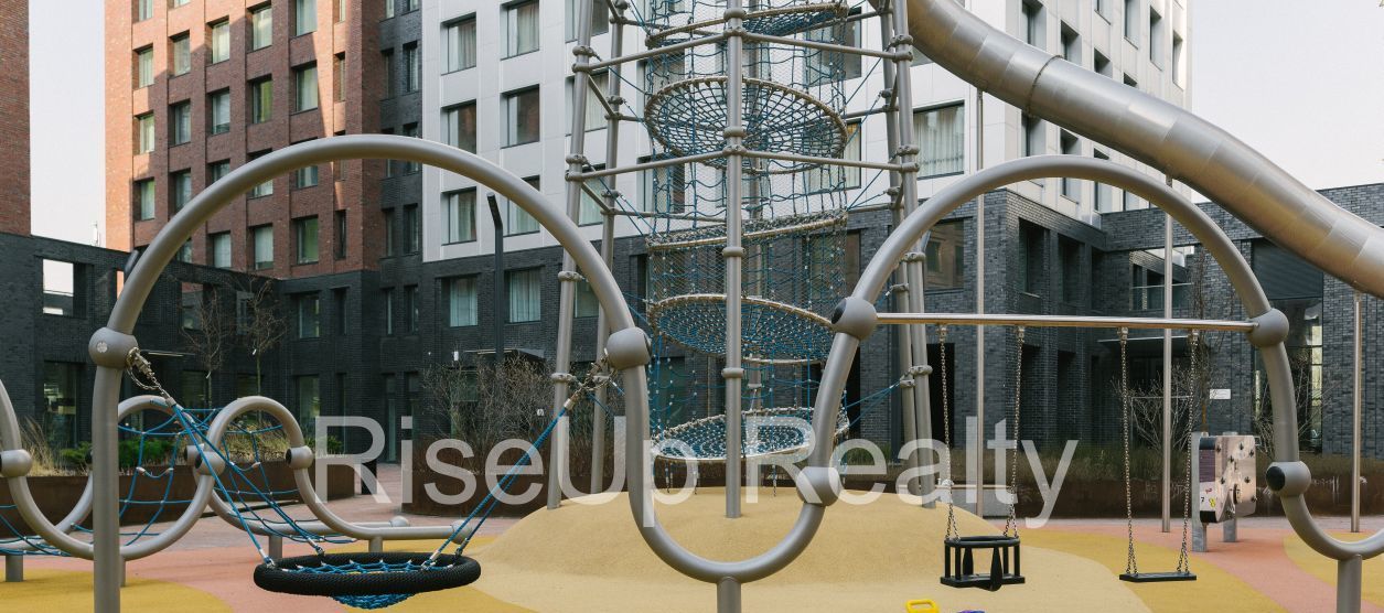 Внутренний закрытый двор, с детскими и спортивными площадками, двор без машин.