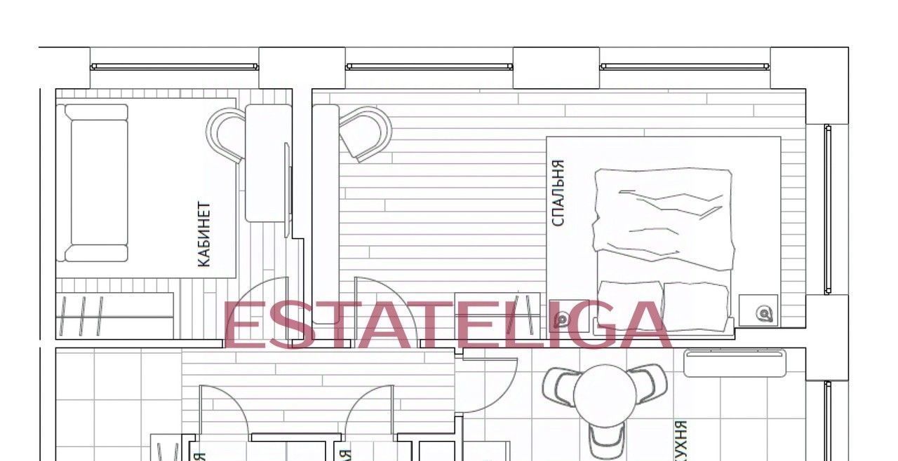 Функциональная планировка квартиры: просторная кухня, изолированная спальня на 3 окна, вторая спальня/кабинет, раздельный санузел с ванной, холл с местами для хранения.