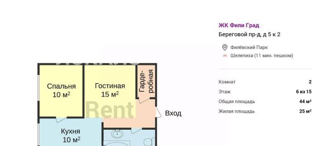 2-к кв. Москва Береговой проезд, 5к2 (44.0 м²)