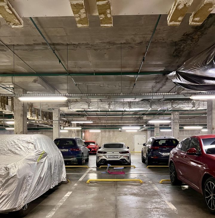 Имеется подземный паркинг. Есть возможность арендовать машиноместо за отдельную плату.