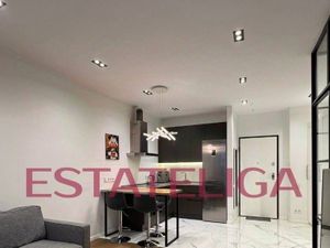 Сдается просторная светлая студия, общей площадью 41,2 м2., включающая: кухню-гостинную, одну изолированную комнату, совмещенный санузел и утепленный балкон. Квартира оснащена всей необходимой для проживания бытовой техникой: встроенными посудомоечной и стиральной машинами, холодильником, духовым шкафом, кондиционером, TV.