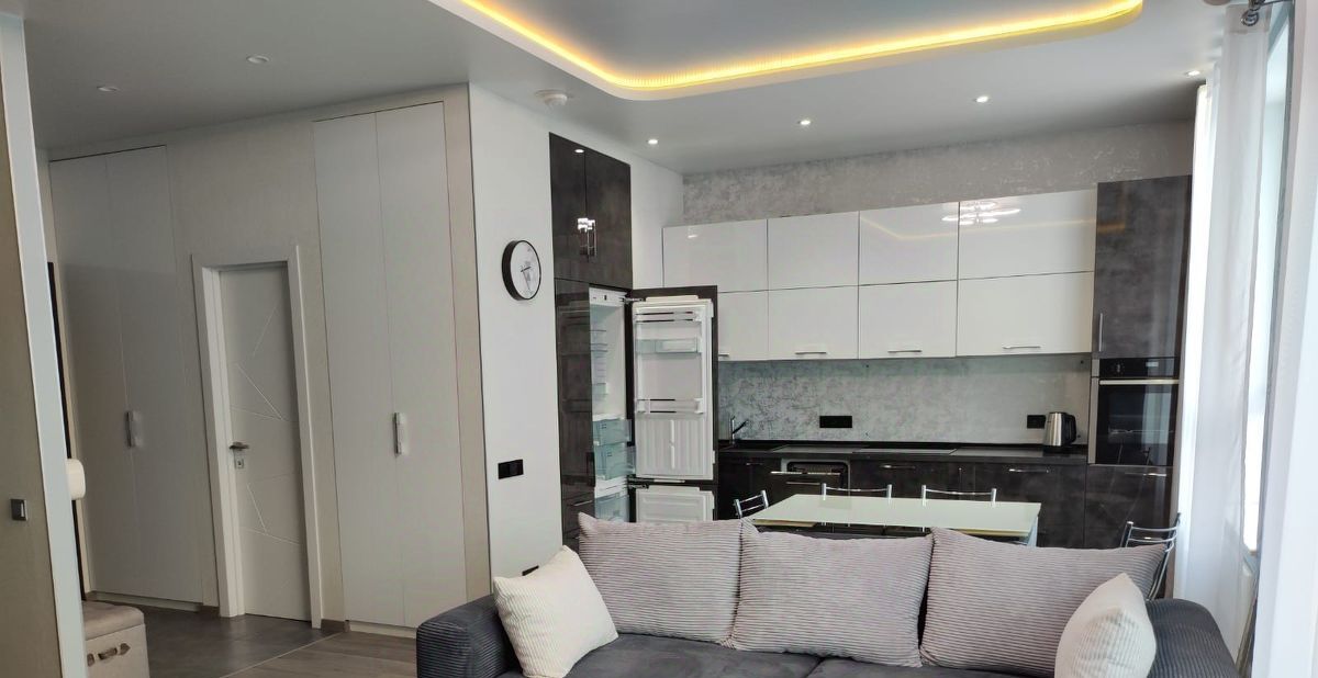 В наличии вся необходимая мебель: обставлена кухня и гостиная, что позволяет сразу заселиться и наслаждаться уютом.