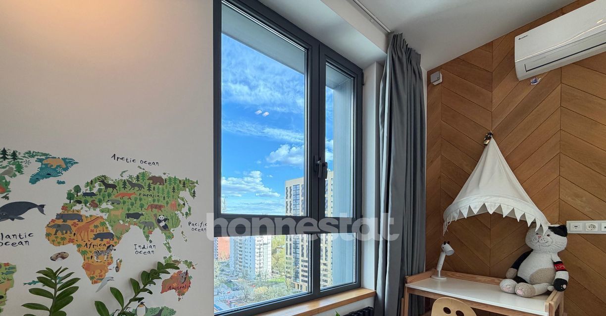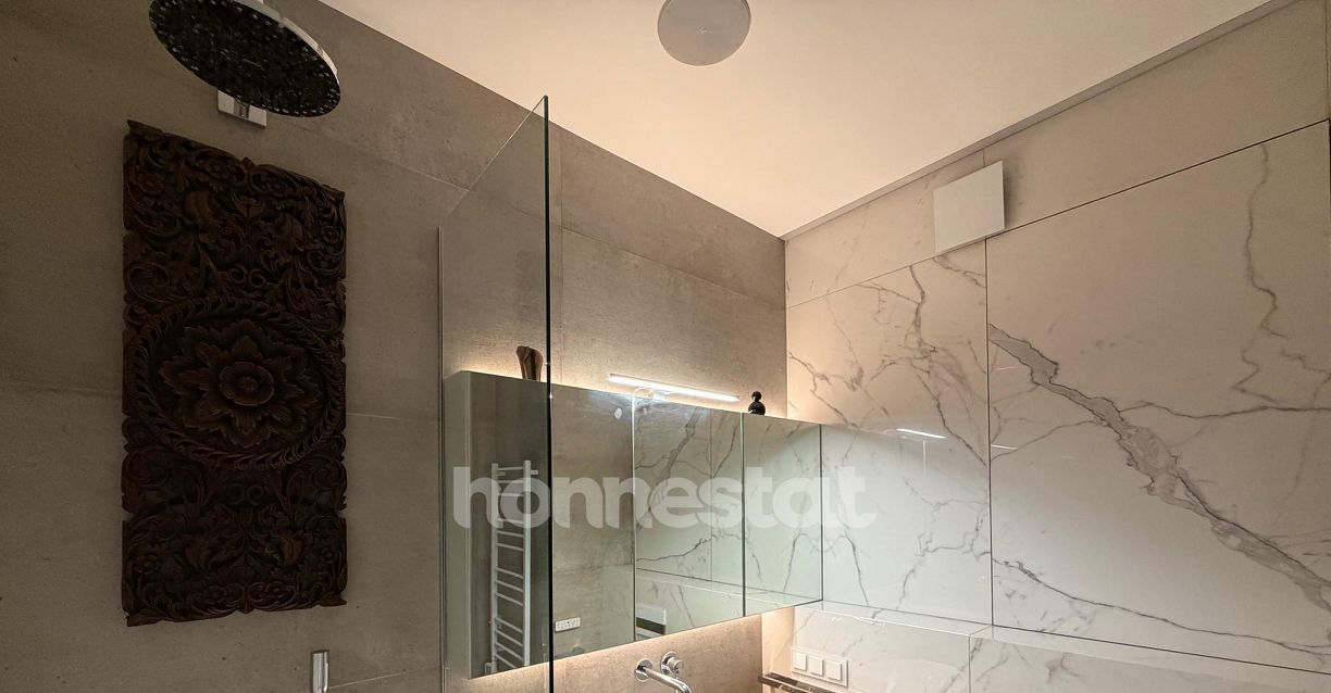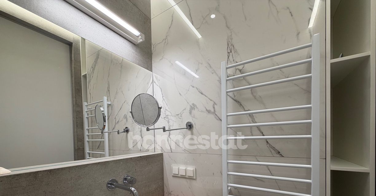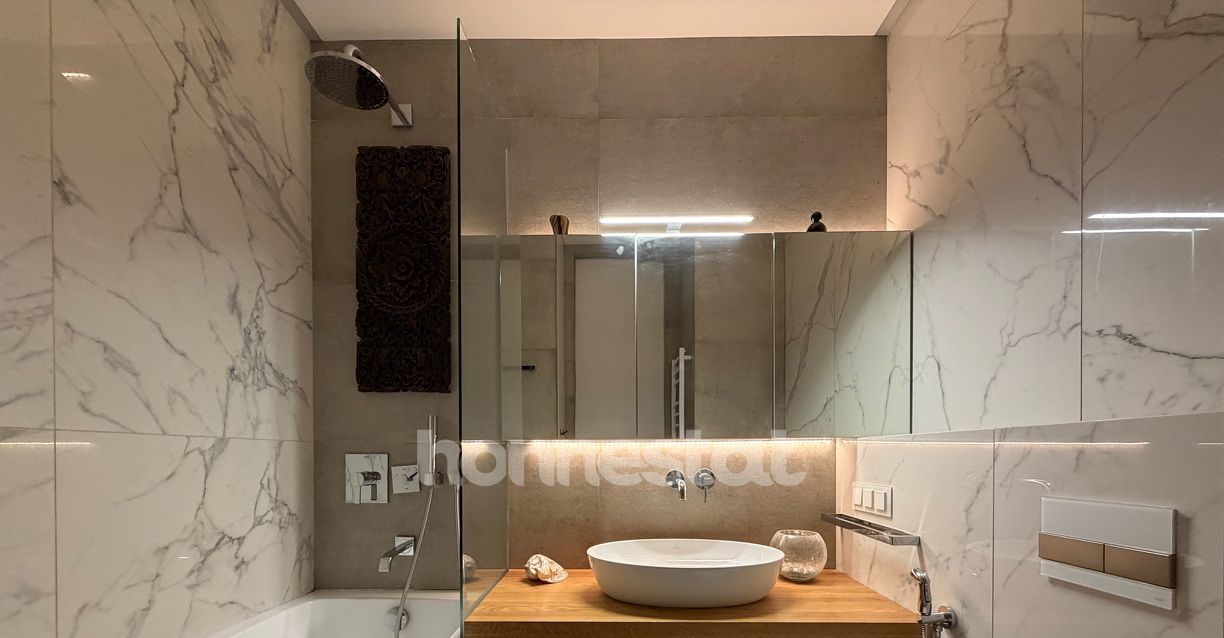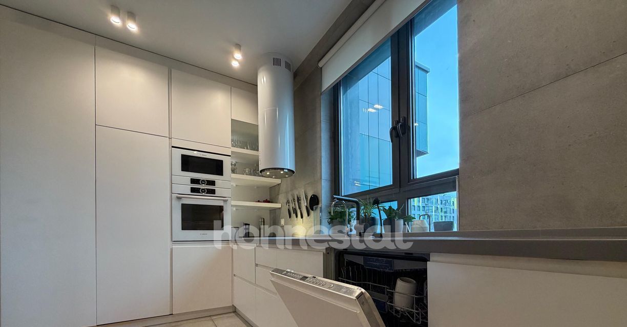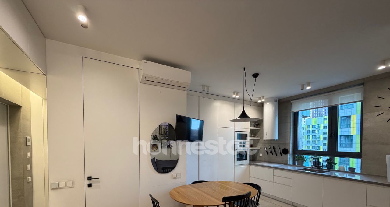 Квартира выполнена в дизайнерском стиле, поэтому вам будет приятно находиться здесь каждый день. Кухня площадью 20 кв. м оборудована современной техникой: холодильник, посудомоечная машина и кондиционер. В комнате есть вся необходимая мебель для комфортного проживания, в каждой комнате дополнительно кондиционеры. В квартире установлена приточная вентиляция, терморегуляторы в каждой комнате, до офлннвя система. В ванной комнате установлена ванна. Два санузла - один совмещённый и один раздельный - делают проживание ещё более удобным.