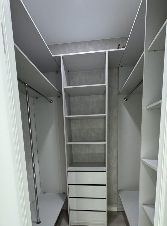 Функциональная планировка апартамента включает в себя: гостиную совмещенную с кухней, две спальни, санузел с душем, две гардеробные, холл со шкафом.