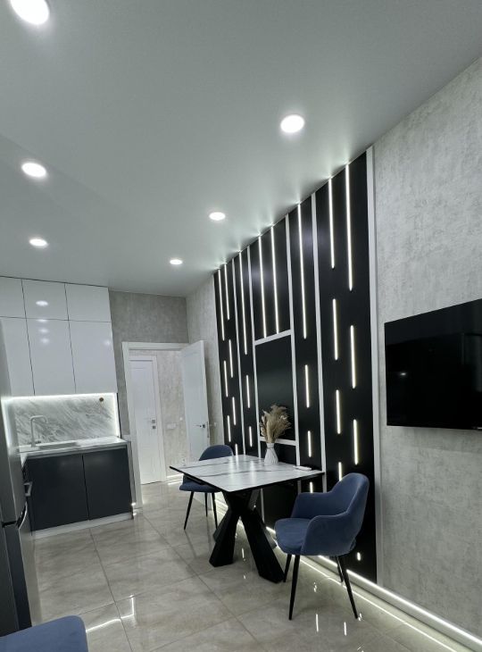 Квартира оснащена всем необходимым для комфортной жизни: посудомоечной машиной, холодильником, микроволновой печью, духовкой, плитой, кондиционером, стиральной машиной с сушкой, трёмя телевизорами и высокоскоростной интернет также в наличии. Вместительные гардеробные шкафы.