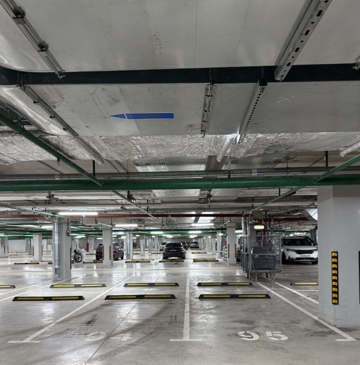 Имеется подземный и наземный паркинг, круглосуточное видеонаблюдение.