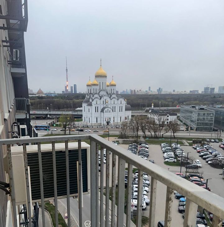 Балкон с видом на Православный Храм и школу.