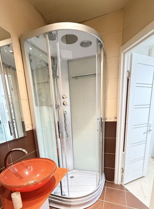 Квартира после косметического ремонта: окраска стен, циклёвка паркета, новая душевая кабина. На кухне встроенная кухня с техникой, все мебель на фотографиях остаётся.