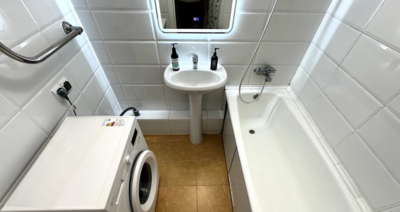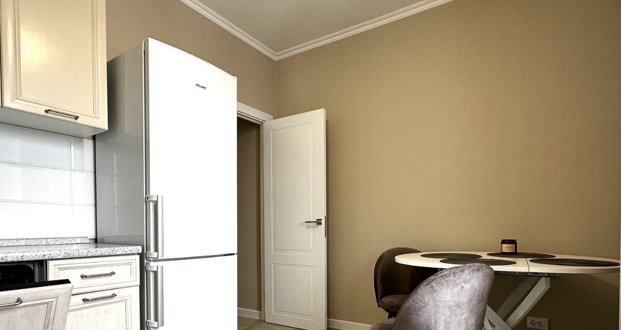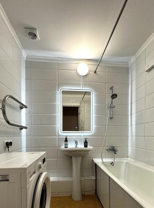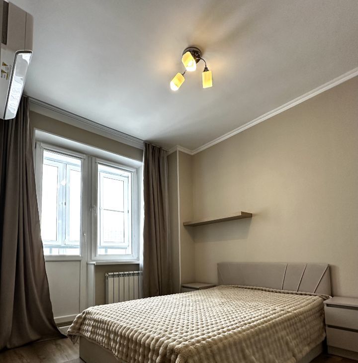 Квартира с евроремонтом и продуманной планировкой. Есть вся необходимая мебель на кухне и в комнате. Установлена современная техника: кондиционер, холодильник, посудомоечная машина, телевизор и стиральная машина. Санузел совмещённый, в ванной установлена ванна. Две лоджии в каждой комнате.
