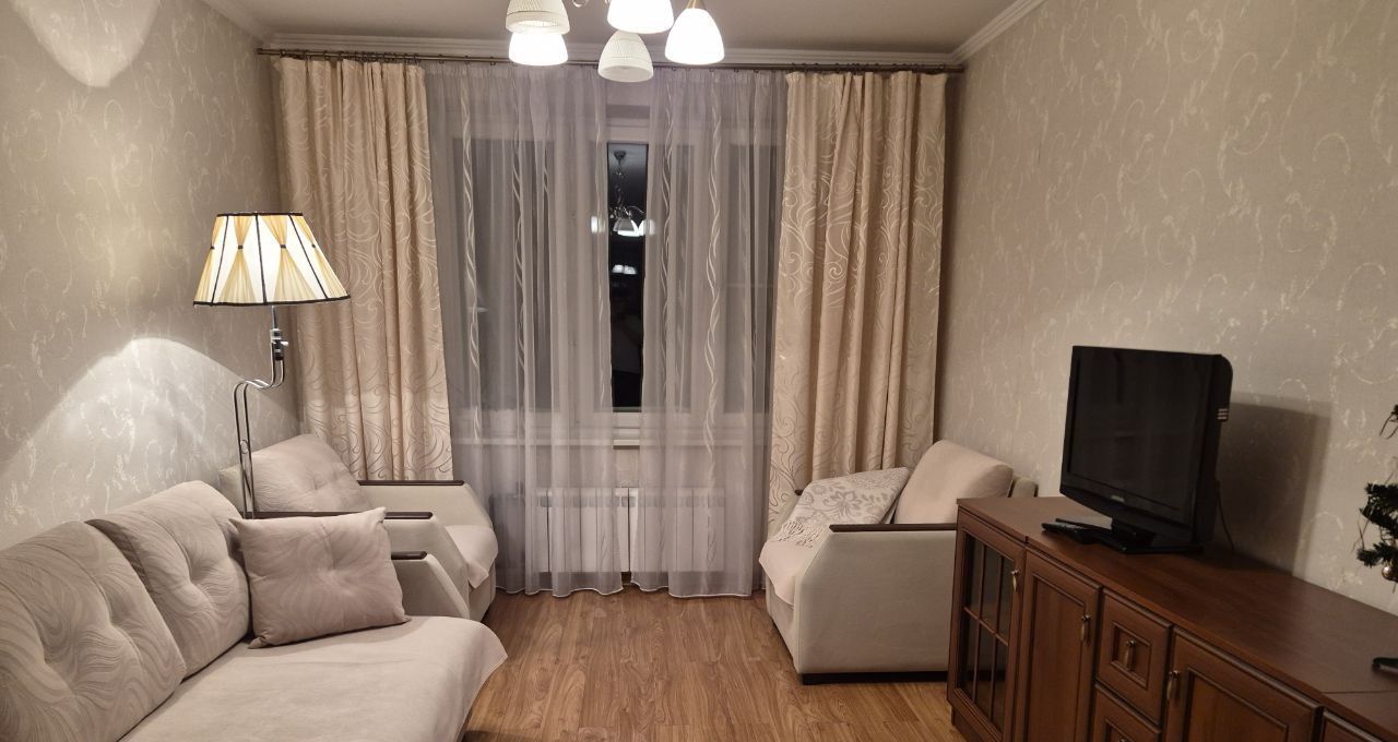 Квартира с ремонтом, стены потолки выровнены, итальянские обои, на полу ламинат в комнатах, керамогранит в коридоре. поэтому вы сможете сразу насладиться комфортом и уютом. В комнатах и на кухне есть вся необходимая мебель. В гостиной хороший двухспальный диван и два кресла, стенка горка , торшер, в спальне кровать ортопедическая 120см, кресло, в прихожей шкаф-стенли, на кухне кухонный гарнитур в отличном состоянии, кухонный стол, бытовая техника, холодильник чистый, печь СВЧ, почти новая, санузел раздельный в современном кафеле.
