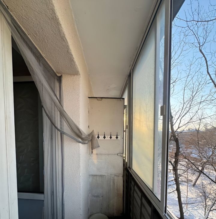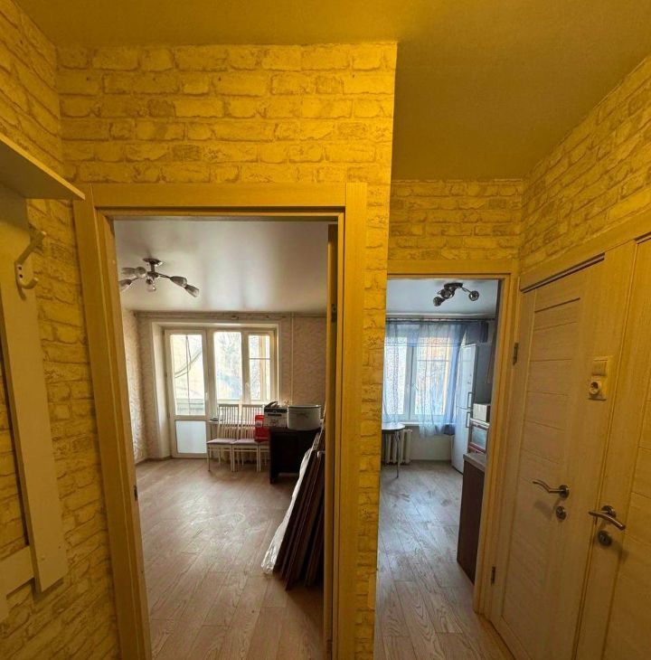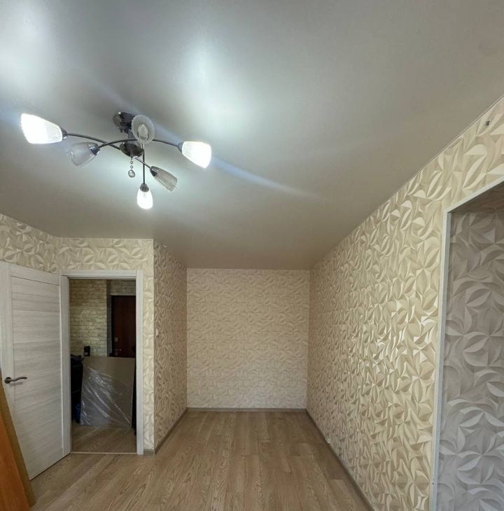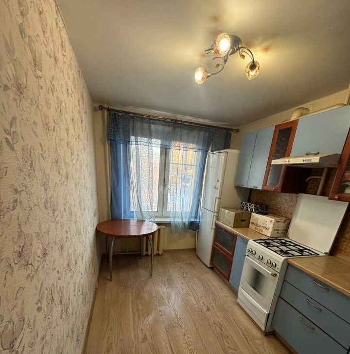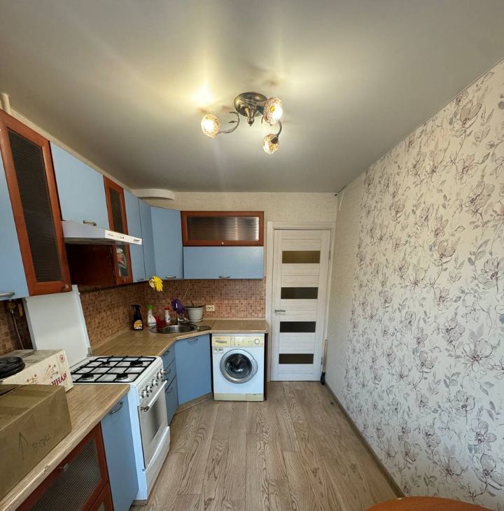 Удобная планировка, все помещения правильной формы. В дальней комнате есть отдельная ниша под встроенный шкаф. Кухня оборудована мебелью и техникой (плита и стиральная машина).