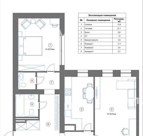 2-к кв. Москва Богословский пер., 16/6С1 (69.0 м²)
