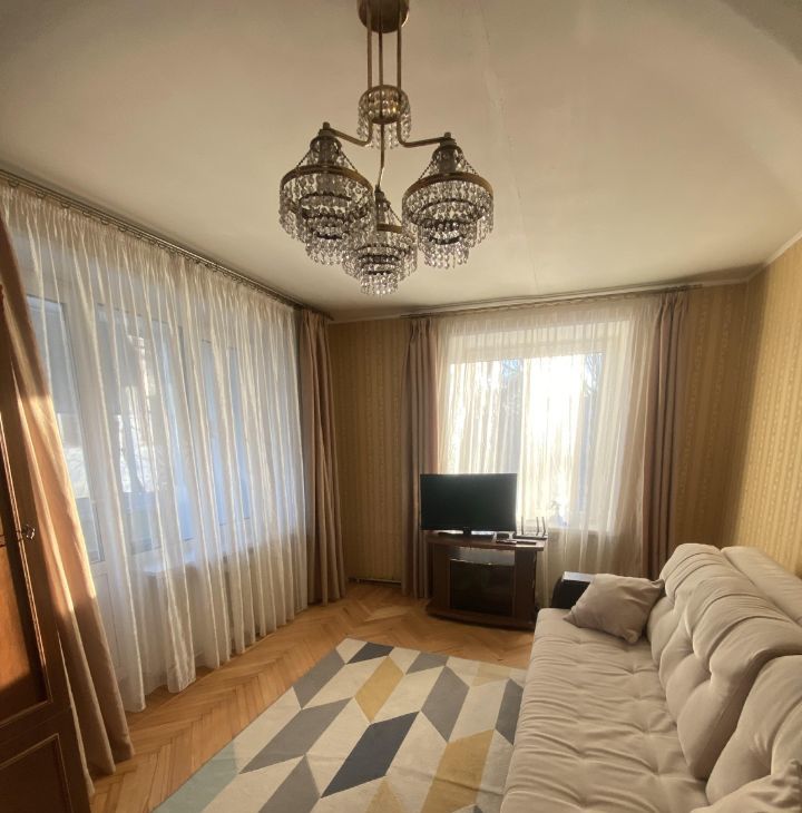 Сдается двухкомнатная квартира в 5 минутах от метро. Комнаты изолированные, в каждой есть шкафы для хранения и раскладывающийся диван.