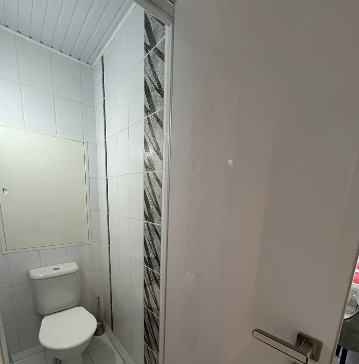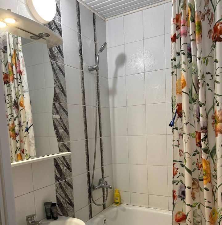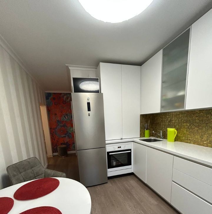 В квартире есть вся необходимая мебель как на кухне, так и в комнате. Из техники — кондиционер, холодильник, посудомоечная машина, телевизор и стиральная машина.