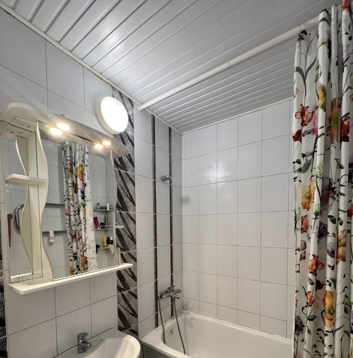В квартире есть вся необходимая мебель как на кухне, так и в комнате. Из техники — кондиционер, холодильник, посудомоечная машина, телевизор и стиральная машина.