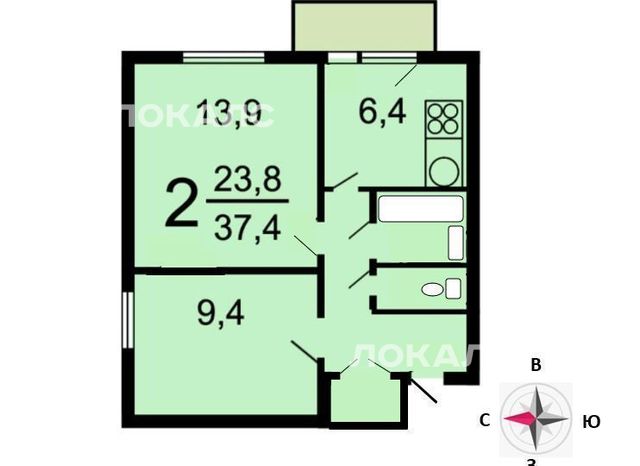 2-к кв. Москва Болотниковская ул., 3К7 (38.0 м²)