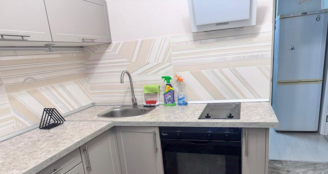В ожидании своих жильцов светлая, ухоженная квартира. Комнаты изолированные. Гарнитурная кухня под единой столешницей с полным комплектом необходимой бытовой техники. В просторной гостиной комфортный диван, журнальный столик, при необходимости будут предоставлены шкафы для вещей. Из гостиной выход на большую лоджию (застеклена). В спальне установлен спальный гарнитур, состоящий из двуспальной кровати, вместительного углового шкафа с зеркальными дверями, комода. Санузел раздельный.