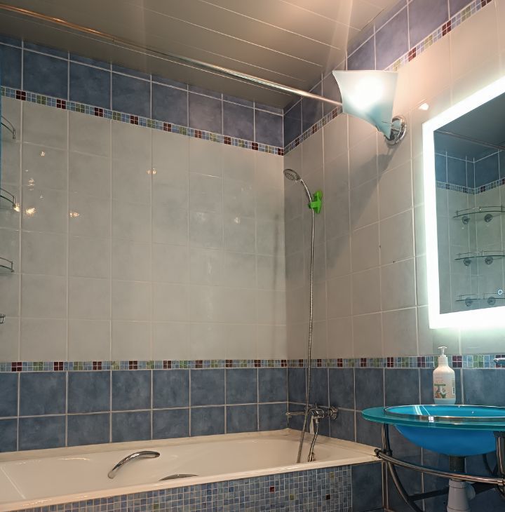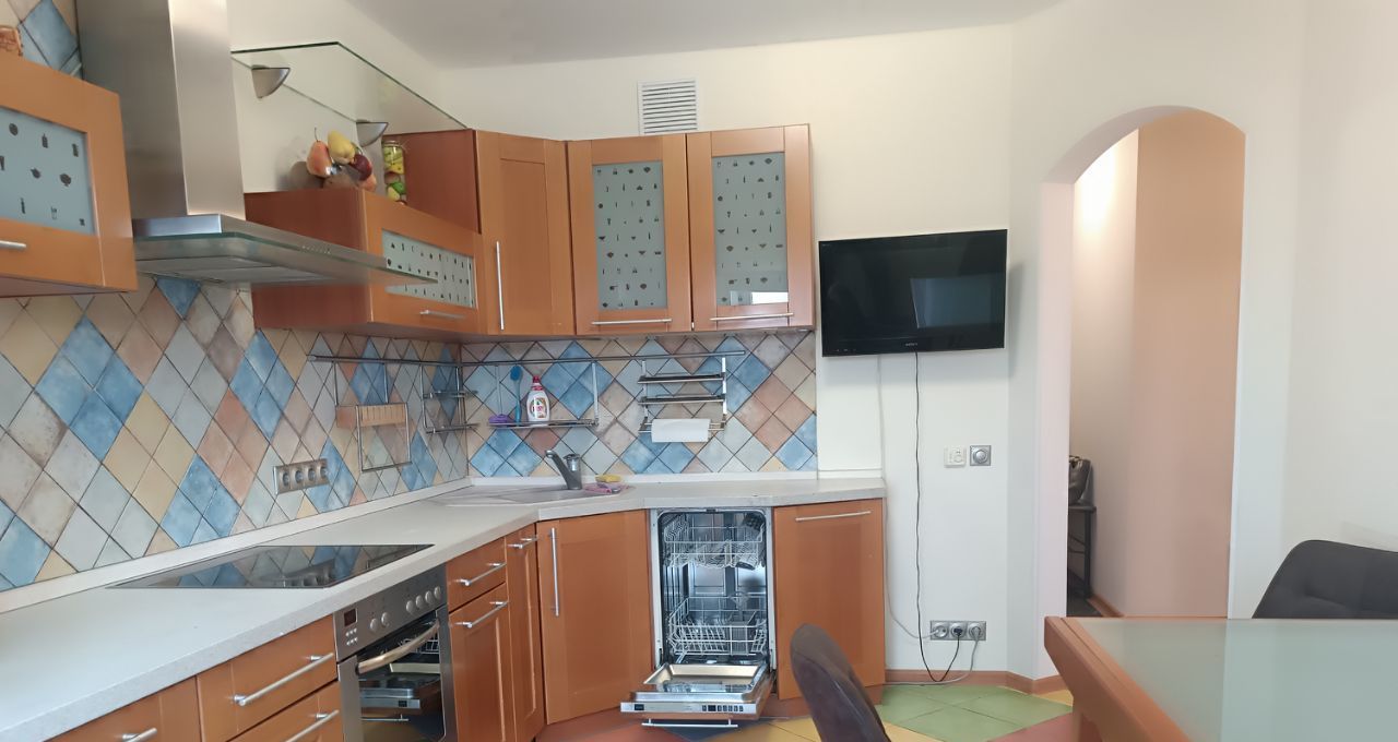 Квартира оборудованна всей необходимой бытовой техникой и мебелью. (Стиральная машина, посудомоечная машина, холодильник, духовой шкаф, микроволновку, пылесос, утюг, сушилка для белья, на кухне есть телевизор). Отдельная гардеробная комната. Огромный балкон с системой хранения. Кондиционеры в 2-х комнатах.