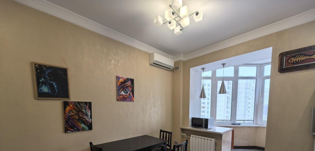 В квартире есть все необходимое для комфортного проживания: кондиционер, холодильник, стиральная машина, телевизор с кабельным/цифровым ТВ. Просторная кухня оборудована современной техникой и обеденной зоной. В гостиной установлен большой шкаф-купе.