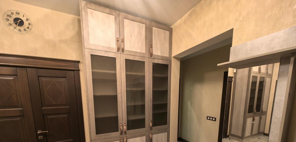 Лоджия застеклена, что позволяет использовать ее как дополнительное пространство. В прихожей предусмотрены вместительные шкафы для хранения вещей.