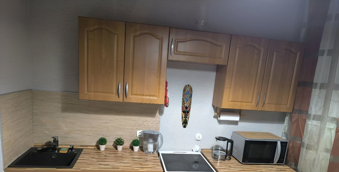 Квартира готова к просмотрам с 31.01. Оборудована всей необходимой техникой и мебелью. Холодильник, стиральная машина, электрическая плита с духовкой, микроволновка, электрический чайник, телевизор. Кухонный гарнитур, обеденный стол со стульями, диван, стенка, комод, шкаф, прихожая.