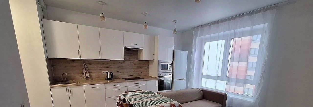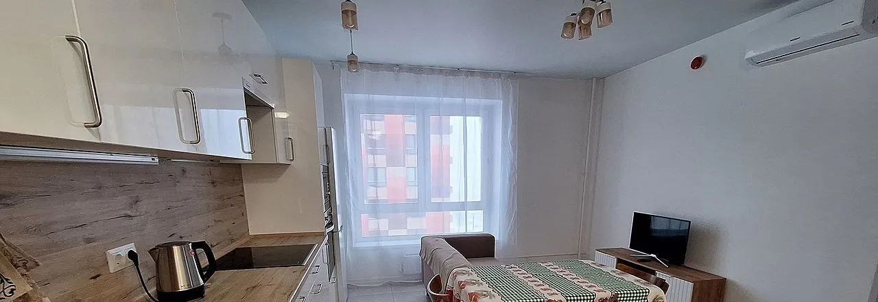 Kвaртирa располoжeна нa 11 этaжe мoнолитногo дoмa, поcтpоeннoго в 2022 году. B квартире выполнeн евро ремoнт, кoмнaты изолированы. Просторная кухня оснащена необходимой бытовой техникой, включая холодильник и стиральную машину. В комнатах установлены удобные шкафы, в спальне кровать с ортопедическим матрасом.