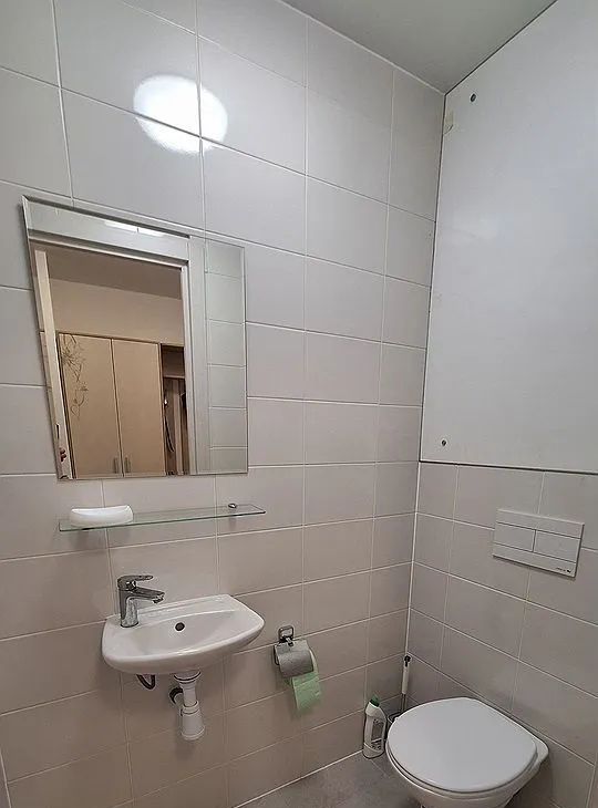 Ванная комната и туалет раздельные, выполнены в светлых тонах. В прихожей предусмотрен удобные шкаф для хранения вещей.