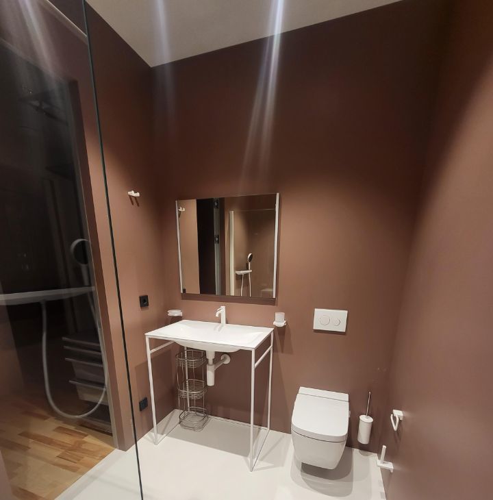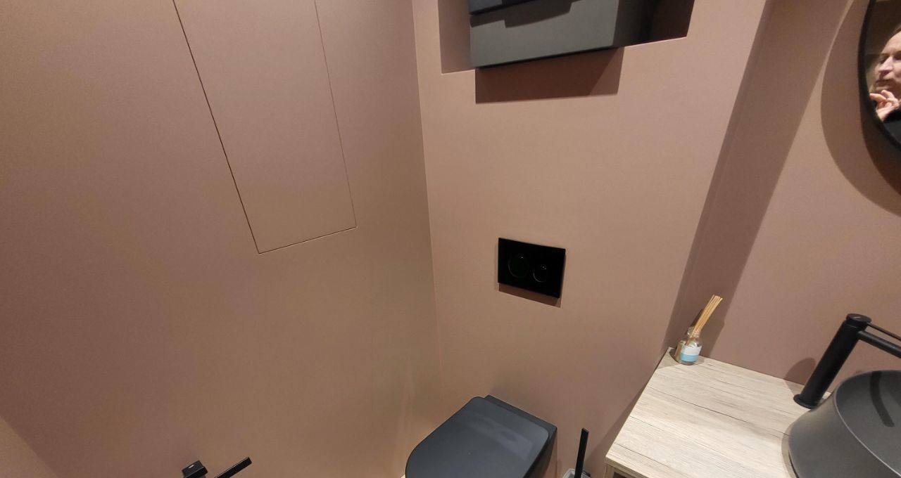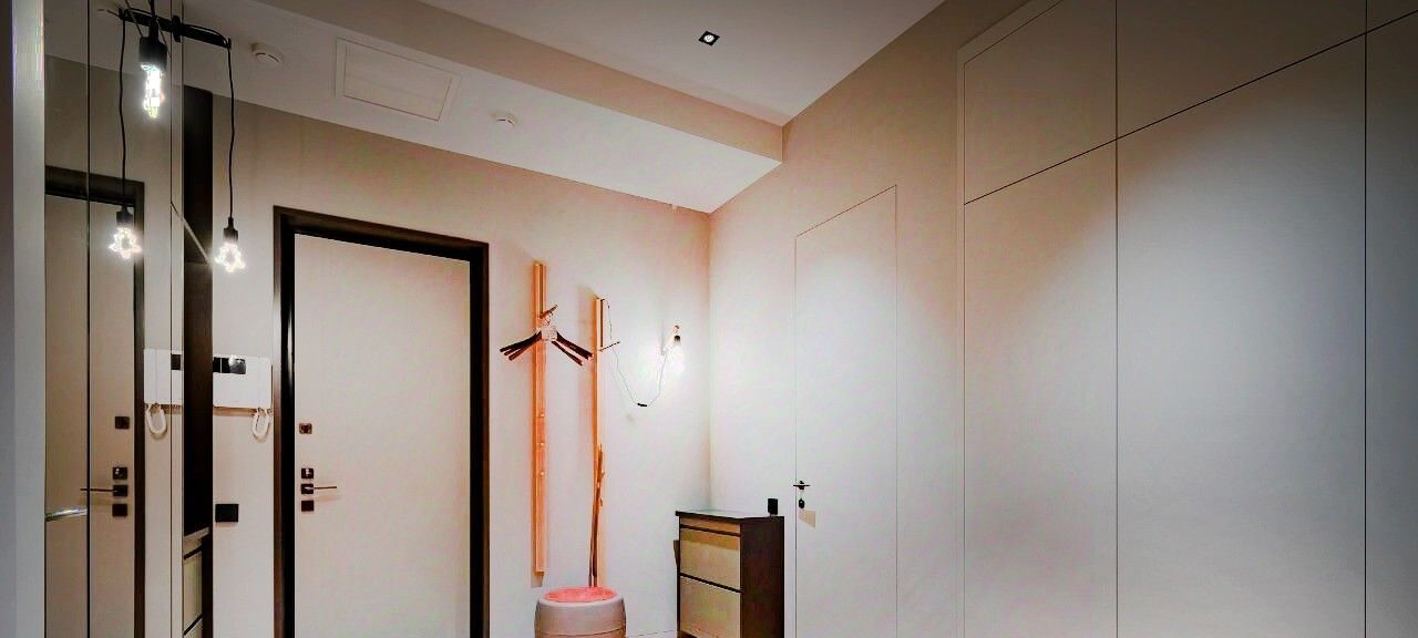 Из мастер-спальни вход в туалетную комнату через просторную гардеробную. В прихожей есть гостевой санузел. Сантехника ведущих европейских производителей. Бытовая техника: стиральная машина с сушкой, ТВ с кинотеатром Kion, ТВ-монитор в спальне, шторы блек-аут, полностью оборудованная кухня с духовым шкафом, посудомоечной машиной, измельчителем отходов, интернет от МТС. Кухня может быть сепарирована от основной жилой зоны. Можно оборудовать отдельный мини-кабинет или рабочее место.