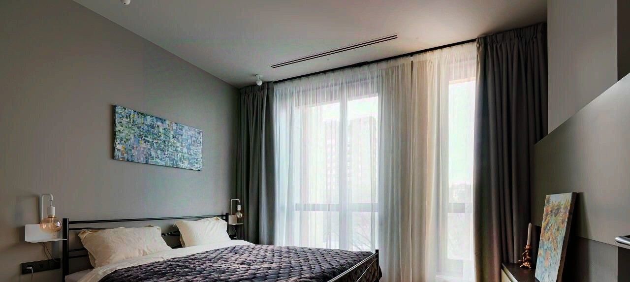 В квартире качественный ремонт с применением современных технологий, включающий в себя систему приточно-вытяжной вентиляции с кондиционированием и увлажнением воздуха Daikin, водонагреватель, звукоизоляцию 360 градусов.