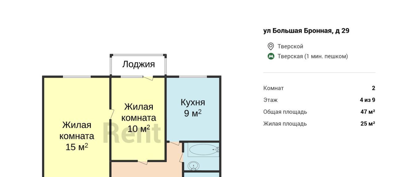 2-к кв. Москва Большая Бронная ул., 29 (47.0 м²)