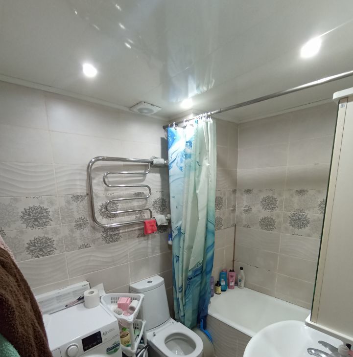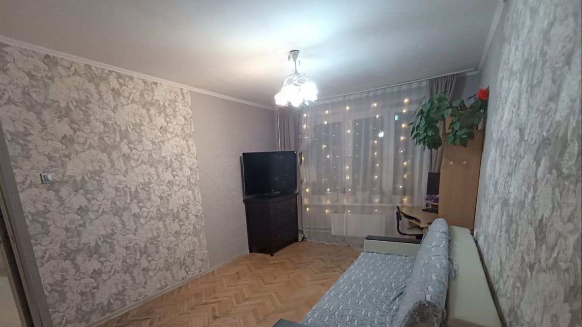 В квартире косметический ремонт, что создаёт приятную атмосферу для комфортного проживания. Есть необходимая мебель в комнате и на кухне, а также техника: холодильник, телевизор и стиральная машина. Окна выходят во двор, поэтому в квартире всегда тихо и спокойно. Санузел совмещённый, имеется ванна.