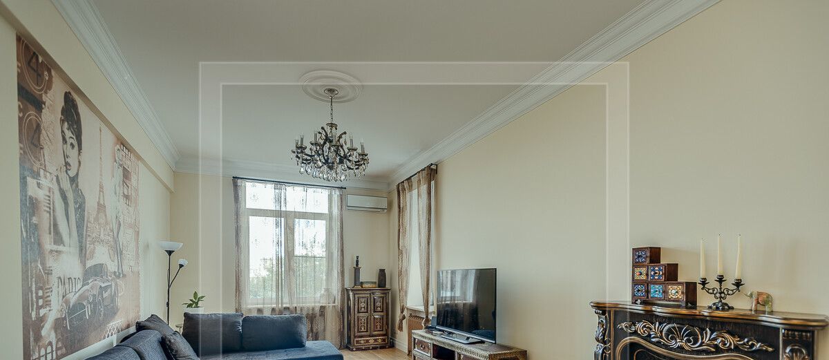 ID 31423: Вашему вниманию предлагается, неповторимая двухкомнатная квартира в сталинском доме с уникальным фасадом. В зонировании квартиры досконально продумана каждая деталь: просторная гостиная, кухня, уютная спальня, ванная комната с душевой кабиной и ванной, балкон. Квартира полностью укомплектована эксклюзивной мебелью и современной бытовой техникой, выполнен качественный дизайнерский ремонт в элегантном стиле, потолки 3,4 м, кондиционирование, интернет. На придомовой территории есть парковочное место.