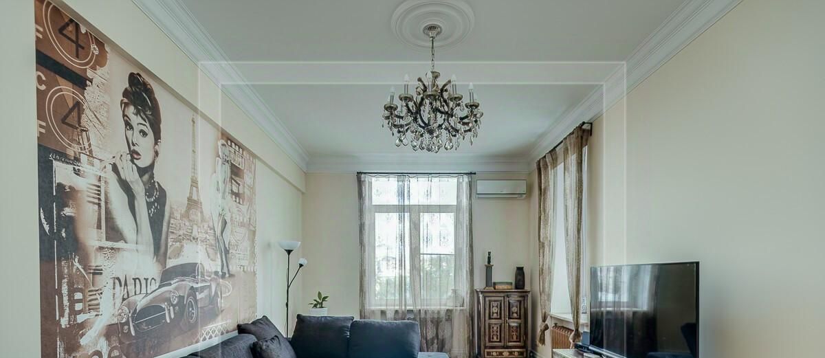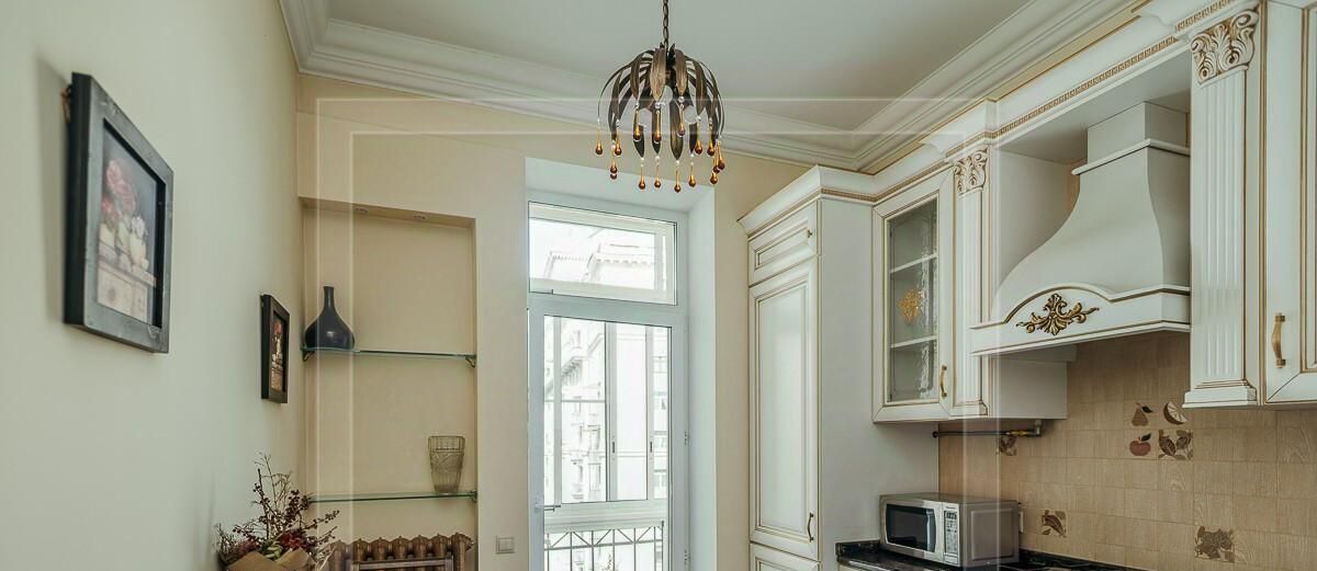 ID 31423: Вашему вниманию предлагается, неповторимая двухкомнатная квартира в сталинском доме с уникальным фасадом. В зонировании квартиры досконально продумана каждая деталь: просторная гостиная, кухня, уютная спальня, ванная комната с душевой кабиной и ванной, балкон. Квартира полностью укомплектована эксклюзивной мебелью и современной бытовой техникой, выполнен качественный дизайнерский ремонт в элегантном стиле, потолки 3,4 м, кондиционирование, интернет. На придомовой территории есть парковочное место.