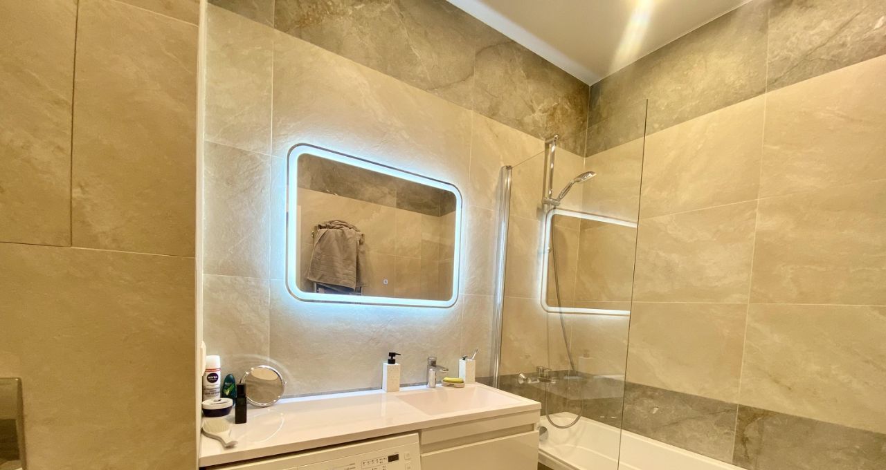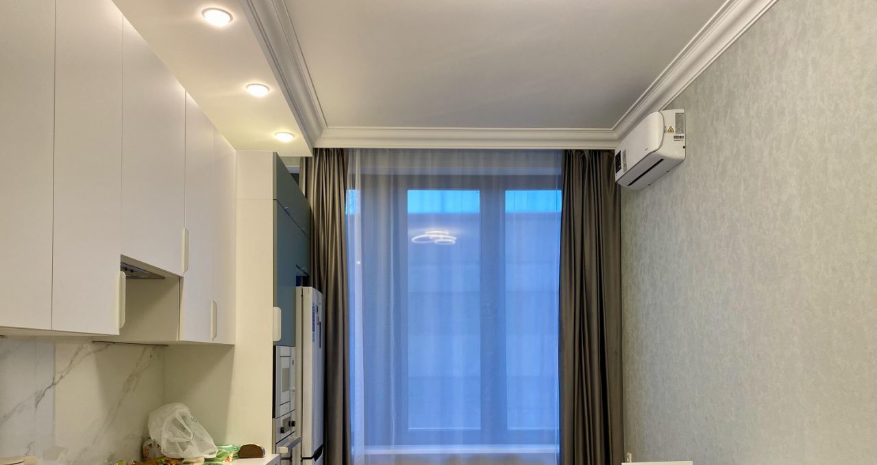 В квартире сделан новый качественный ремонт. Две изолированные просторные комнаты 20 и 22 кв.м, с видом во двор на противоположную сторону. Отдельная ванная комната, совмещенная с санузлом. Просторная кухня, встроенная мебель, посудомоечная машина, духовой шкаф, микроволновая печь, холодильник двухкамерный, кондиционер.