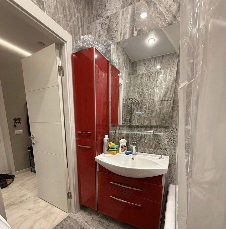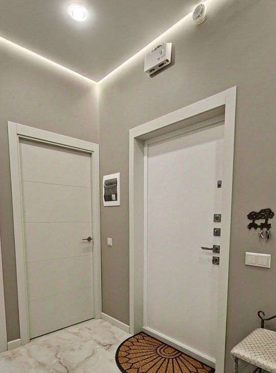 Квартира оборудована системой датчиков протечки с автоматическими запорными кранами. Защита от аварийных ситуаций.