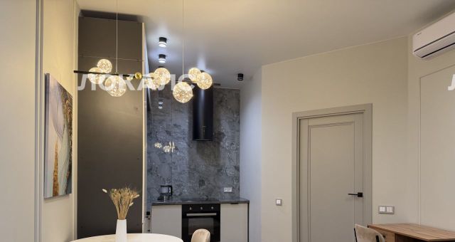 В квартире сделан дизайнерский ремонт, предусмотрена вся необходимая мебель как на кухне, так и в комнатах. Оснащена современной техникой: кондиционер, холодильник, посудомоечная и стиральная машины, телевизор. Санузел совмещенный с ванной, а из окон открывается вид на улицу. Также есть лоджия, где можно приятно провести время на свежем воздухе.