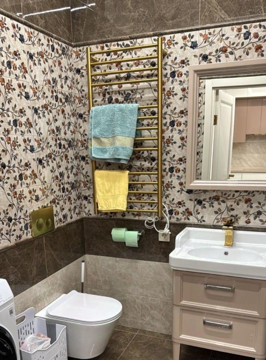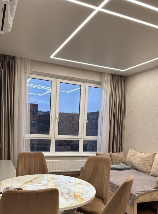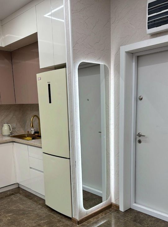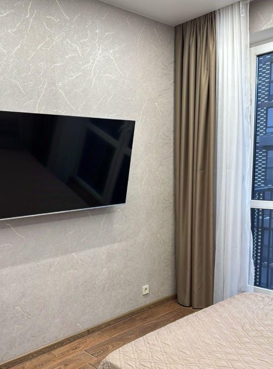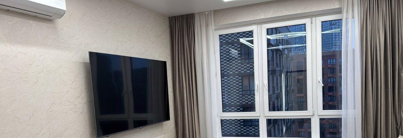 Квартира полностью готова для комфортного проживания: в кухне и комнате есть необходимая мебель, установлена современная техника — кондиционер, холодильник, посудомоечная и стиральная машины, телевизор. Ванная комната оборудована ванной, что позволяет расслабиться после трудового дня. Совмещенный санузел выполнен в современном стиле.