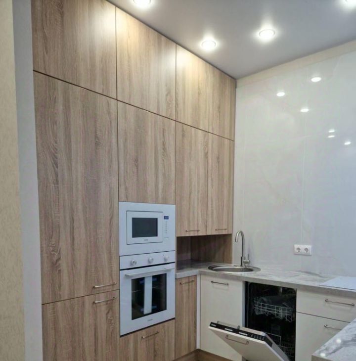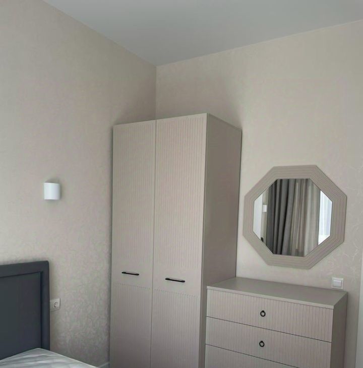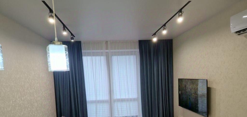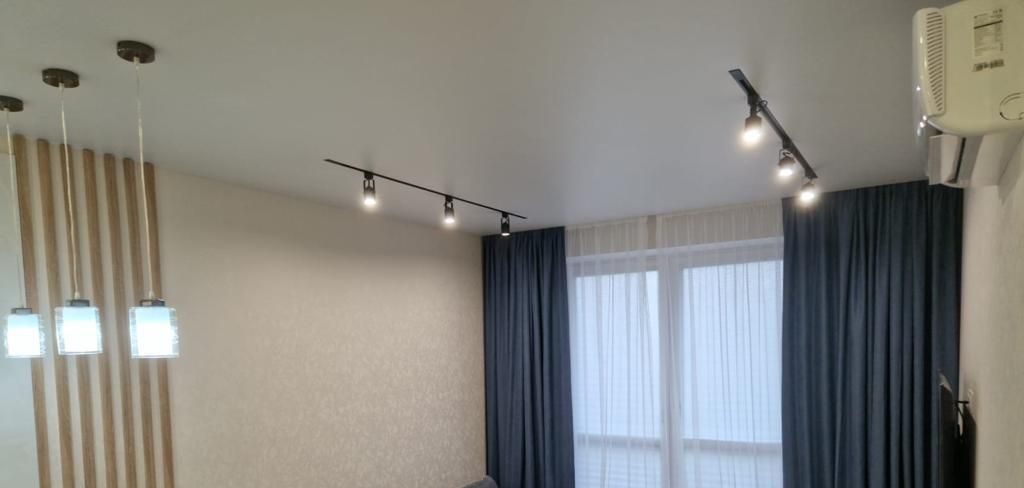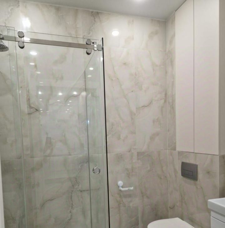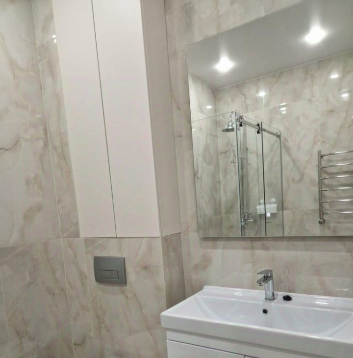 В квартире сделан дизайнерский ремонт. Здесь вы найдёте всё необходимое для комфортного проживания: кондиционер, холодильник, посудомоечная машина, телевизор и стиральная машина. На кухне и в комнате есть мебель, а в ванной установлена душевая кабина. Совмещённый санузел выполнен в современном стиле.