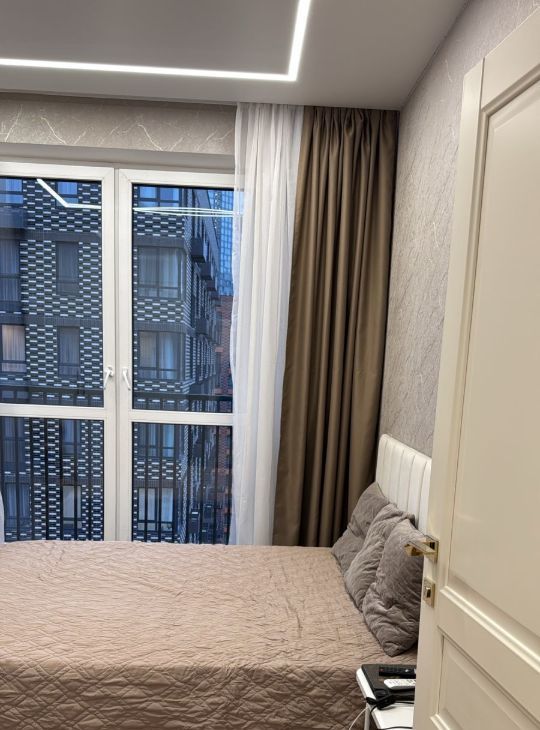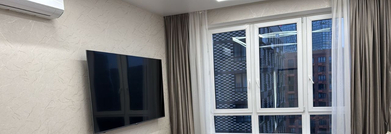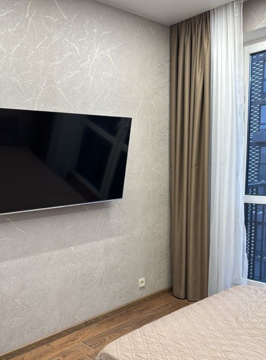 В квартире выполнен дизайнерский ремонт, что подчёркивает её современный стиль и комфорт. Установлена вся необходимая техника: кондиционер, холодильник, посудомоечная и стиральная машины, а также телевизор. Мебель размещена как на кухне, так и в комнатах, поэтому сразу можно заселяться и чувствовать себя как дома. Санузел совмещённый, оборудован ванной. Из окон открывается вид как на улицу, так и во двор, а на балконе можно наслаждаться свежим воздухом.