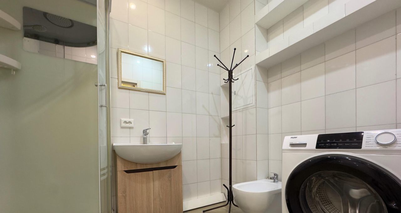 Квартира с удобной кухней-гостиной, двумя изолированными спальнями, современным санузлом и просторной прихожей. Большие окна и высокие потолки.