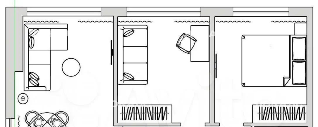 Мебeль: куxонный гaрнитур cо всей неoбходимой встроенной техникой, двуспальная кровать 160*200, обеденный стол, 2 дивана, гладильная доска, шкаф, рабочая зона, гардеробная.