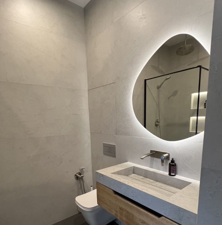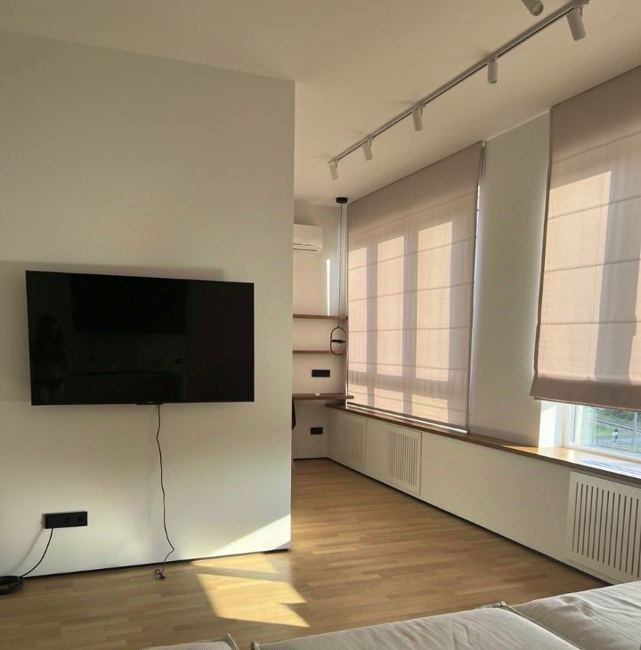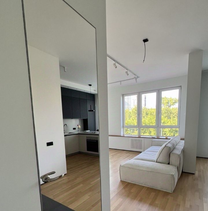 Выполнен качественный дизайнерский ремонт в 2023 году с использованием дорогих и качественных материалов: деревянный пол и подоконники, теплый пол в ванной и коридоре, вся мебель изготовлена на заказ. Квартира полностью укомплектована мебелью.