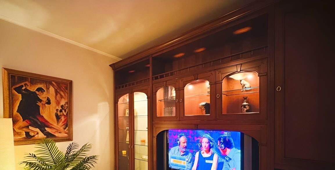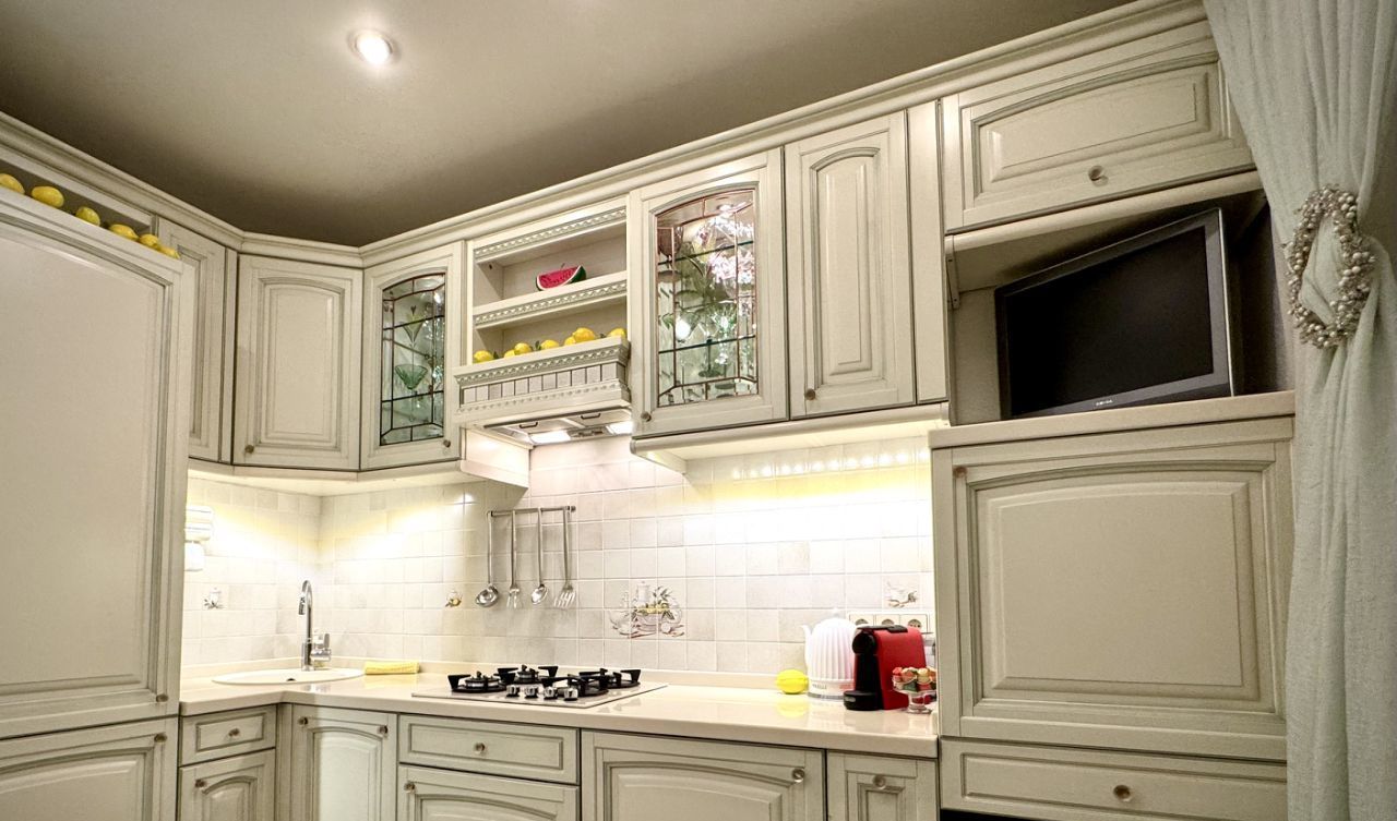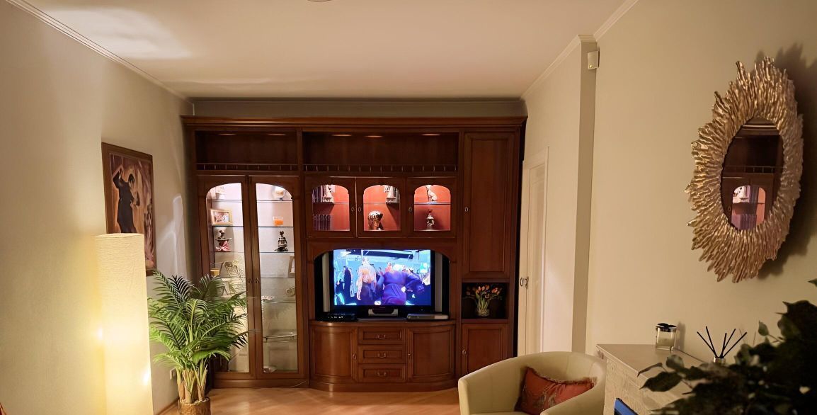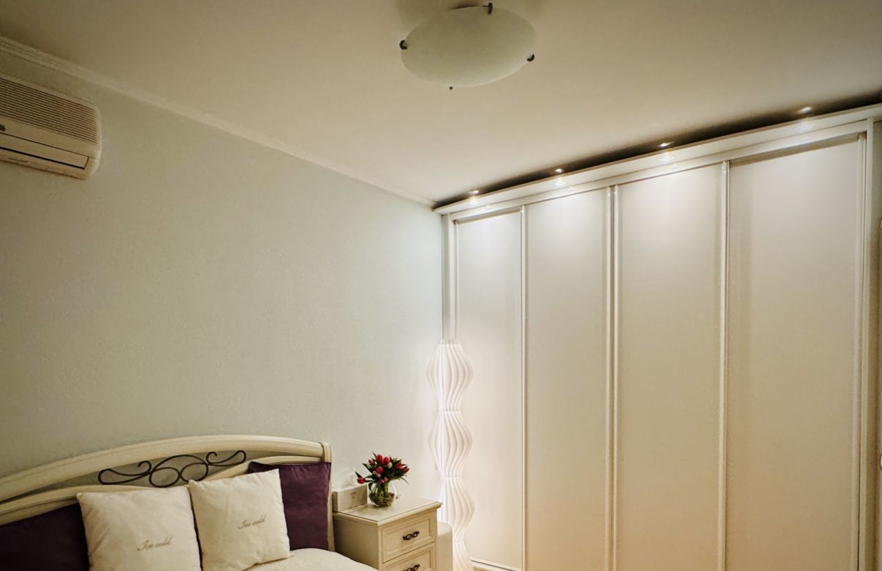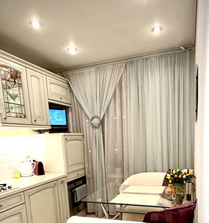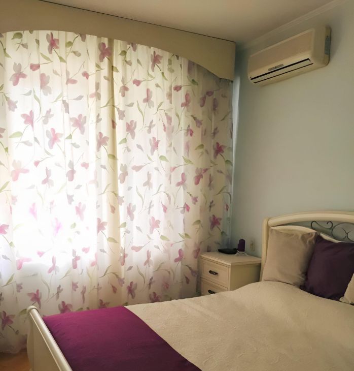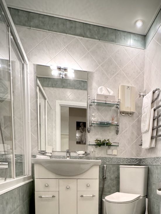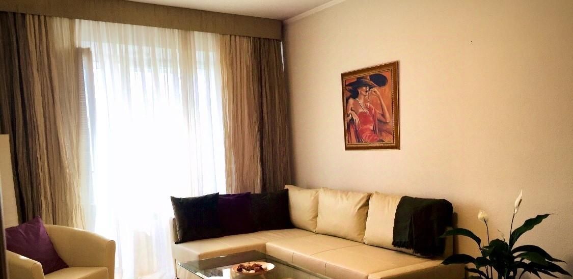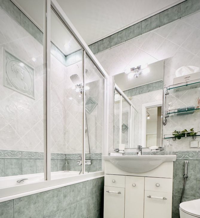 Стильный евроремонт с использованием качественных отделочных материалов, застеклённый и утеплённый балкон, стеклопакеты, два кондиционера, полы - паркет и плитка, беспроводной интернет, спутниковое ТВ с зарубежными каналами, камин. Со вкусом подобранная мебель из Италии: гостиная, прихожая, кухня, спальня - большая 2-х спальная кровать с итальянским ортопедическим матрасом и высококачественным постельным бельём. Кожаный двухместный раскладной диван в гостиной. Встроенный итальянский кухонный гарнитур с полным набором современной бытовой техники премиальных европейских брендов - новая стиральная машина AEG с функцией сушки, пиролитический духовой шкаф Siemens, новая посудомоечная машина Bosch, микроволновая печь Panasonic, капсульная кофемашина Nespresso, мультиварка, тостер Philips. Новый набор фарфоровой столовой посуды из Англии, хрустальные бокалы для вина, коньяка, воды от лучших итальянских производителей. Совмещённый санузел с новой качественной сантехникой и смесителями Grohe, бойлер.