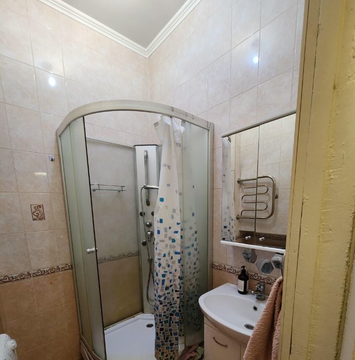 Общая площадь квартиры 49,8 кв.м., комнаты изолированные (17,6 и 12,5 кв.м.), кухня 8,1 кв.м., санузел раздельный. Высокие потолки — 3 метра. Зимой тепло. Приличные соседи.