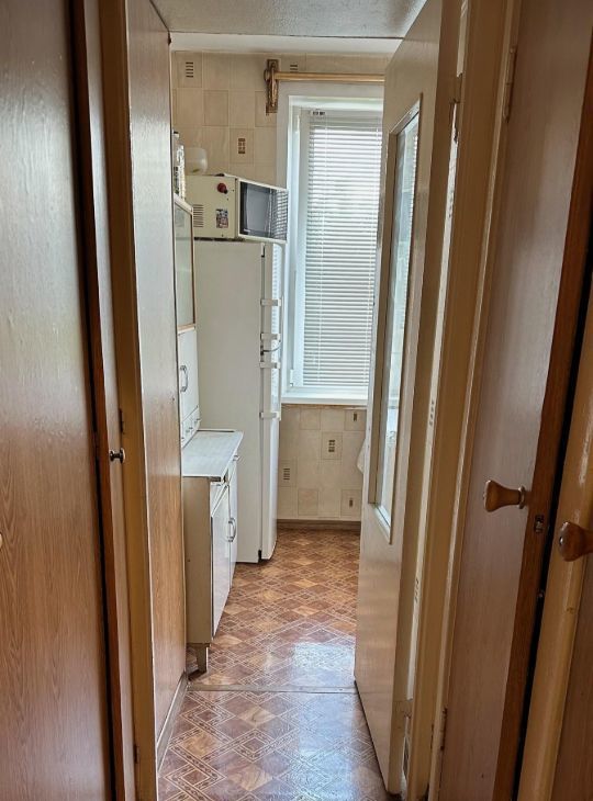 Ремонт не свежий, но квартира жилая, чистая, комнаты раздельные 20,3 м2 и 13 м2, несколько встроенных шкафов.